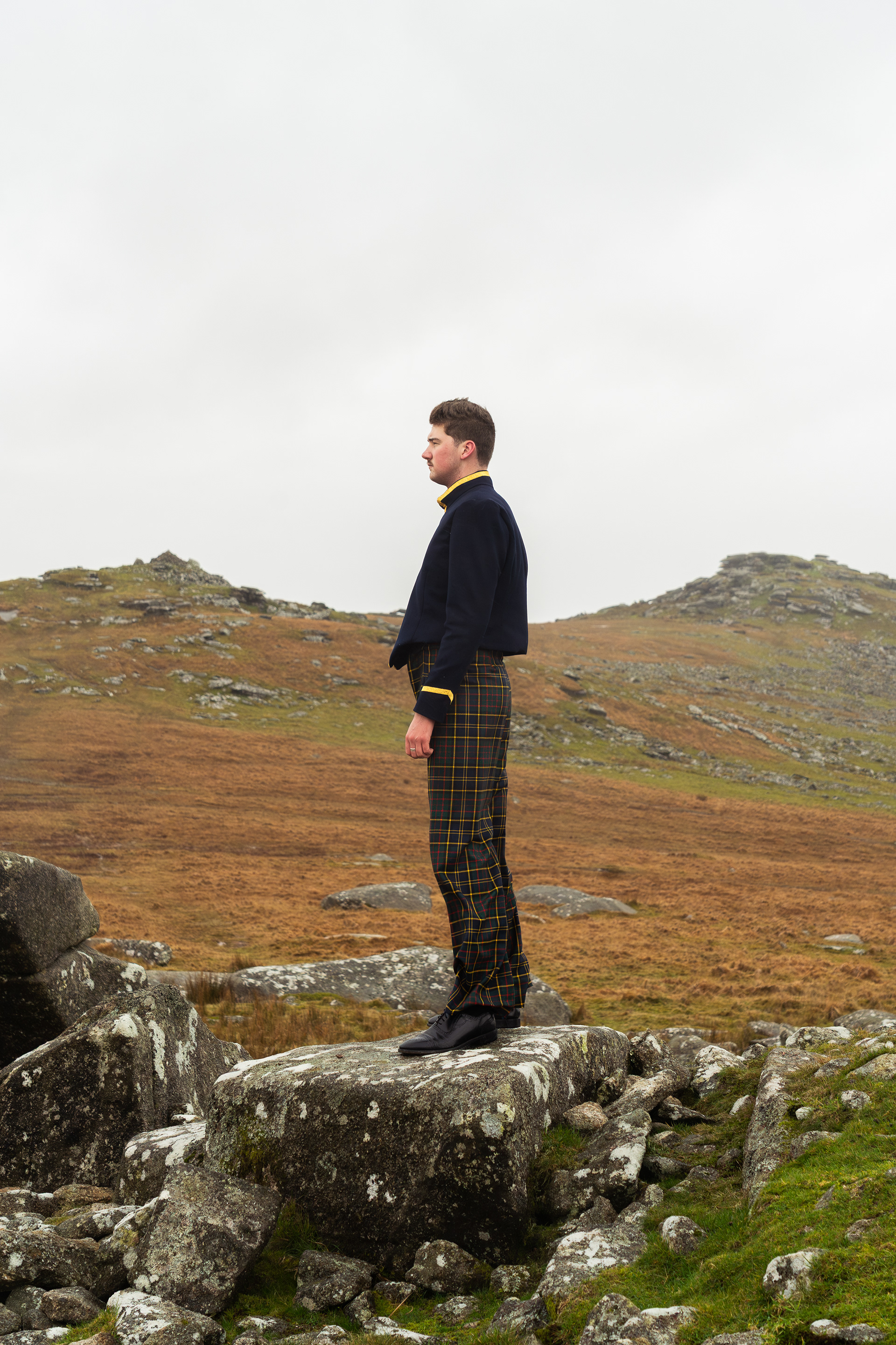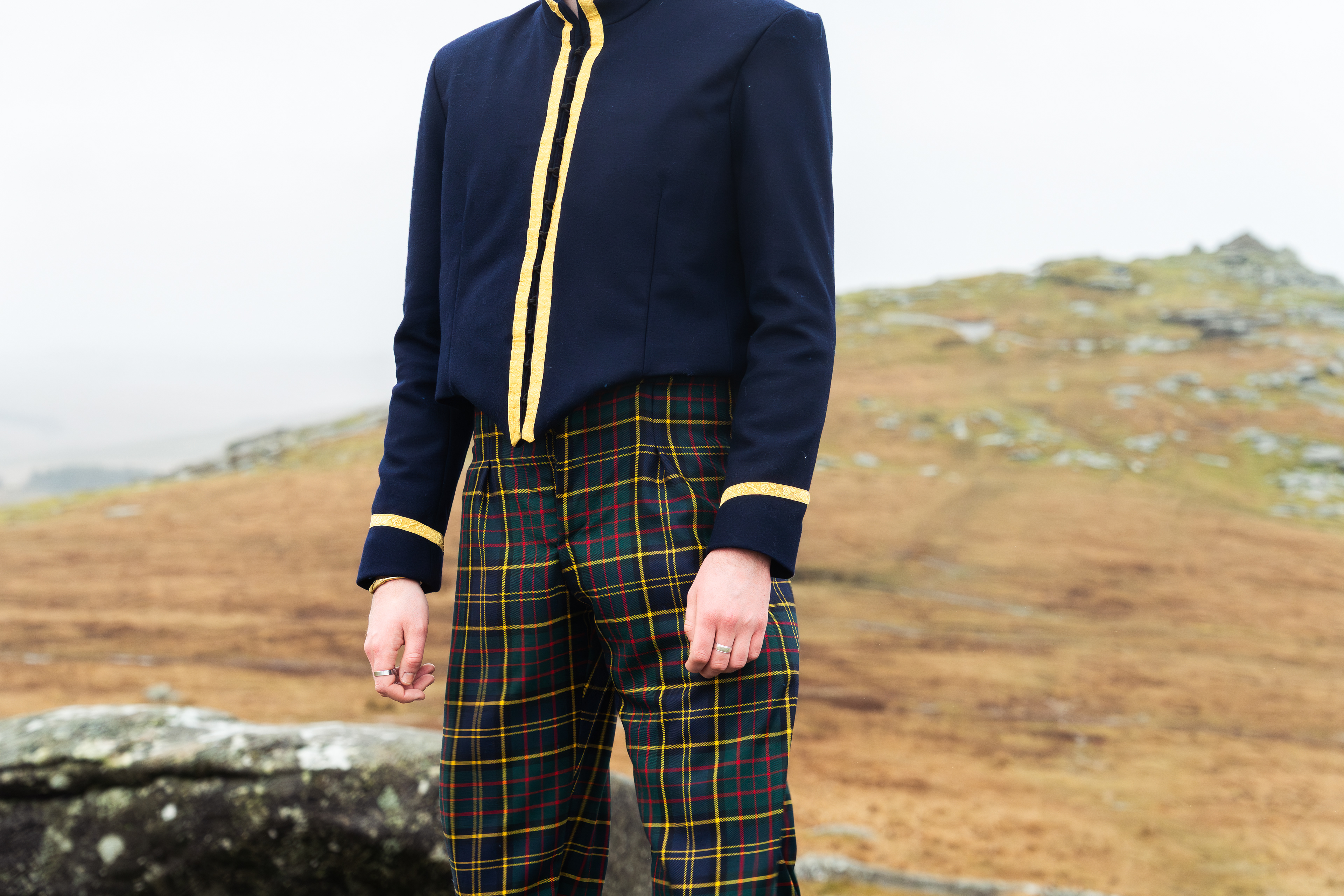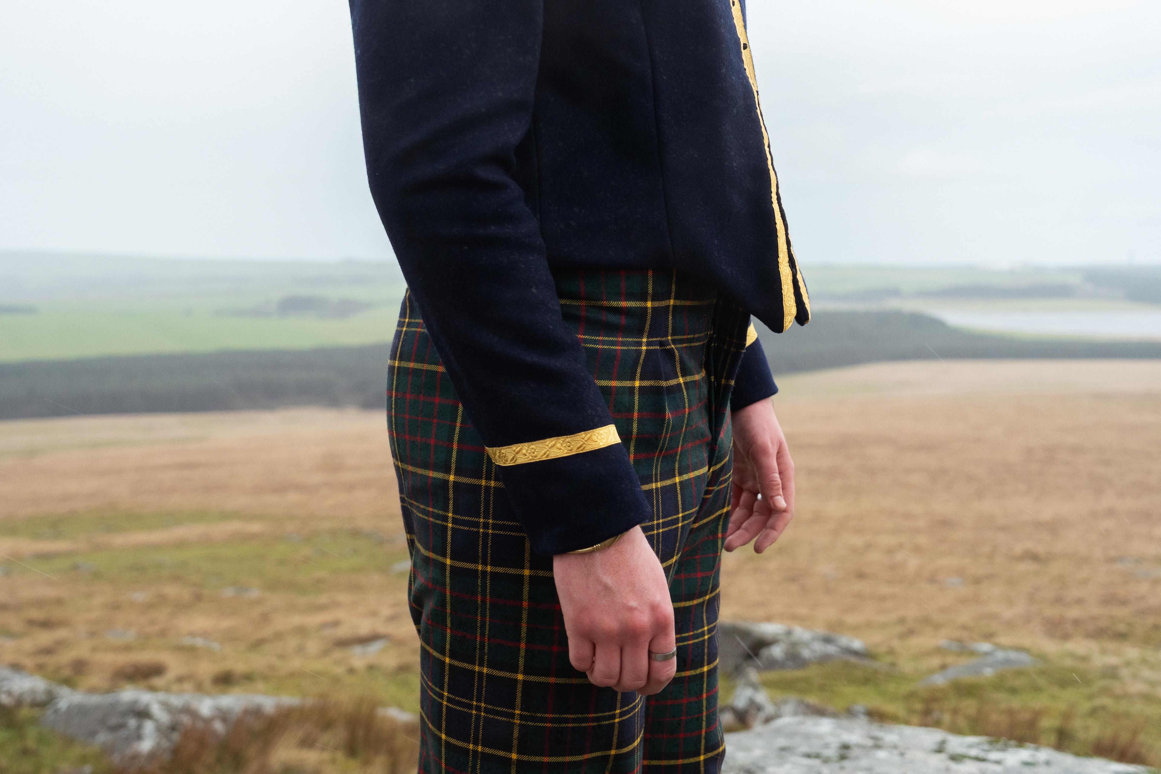 Garments designed by Ottilie Macmillan, inspired by Scottish military clothing and made using her family's tartan.